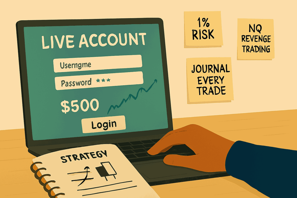 After 90 days of consistent results on demo, Ravi funded a small live account with $500. He didn’t increase risk  he copied his exact demo habits, including:
