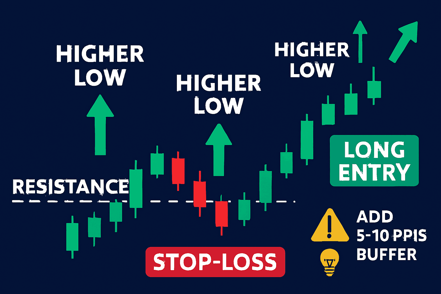 🧠 Pro Tip: Add a buffer of 5–10 pips beyond the key level to reduce getting stopped by false breakouts.