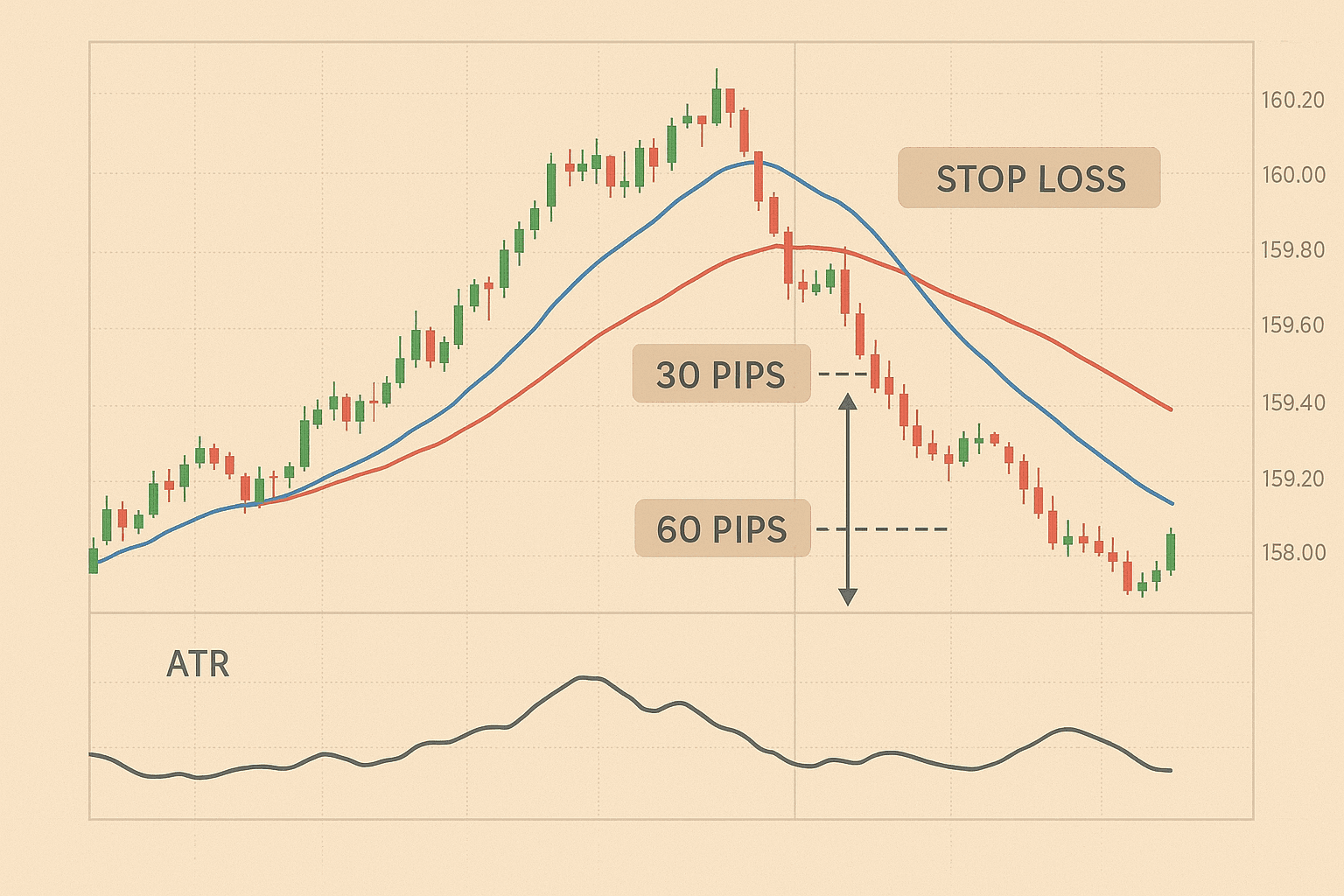 • ATR(14) = 25 pips → SL = ~38–50 pips from entry